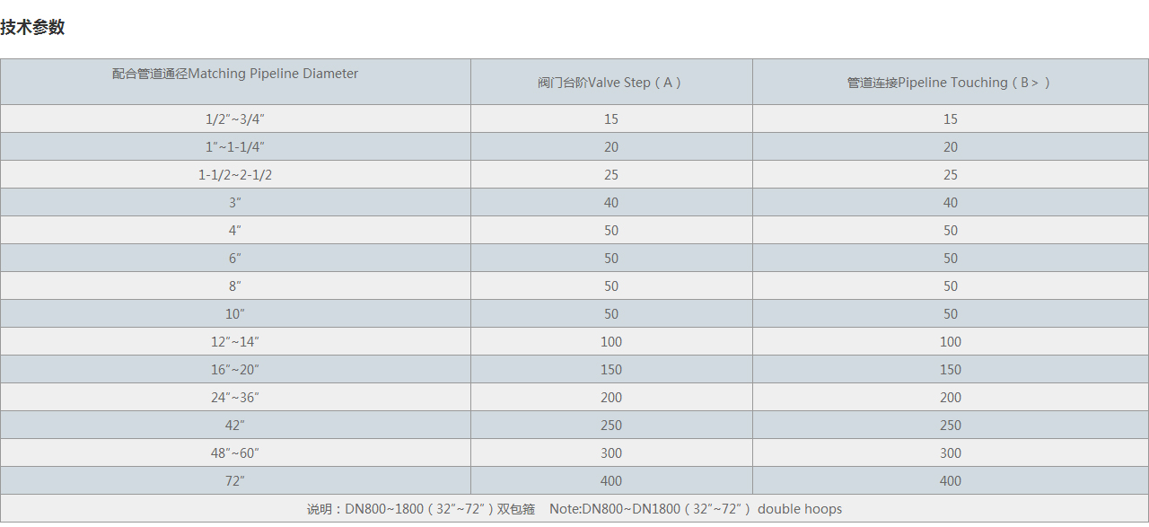 | 說明:DN800~1800(32″~72″)雙包箍 Note:DN800~DN1800(32″~72″) double hoops | ||