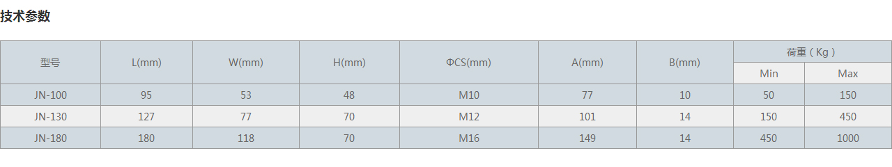 | 型號(hào) | L(mm) | W(mm) | H(mm) | ΦCS(mm) | A(mm) | B(mm) | 荷重(Kg) | |