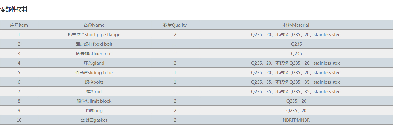5 滑動管sliding tube 1 Q235、20、不銹鋼 Q235、20、stainless steel
